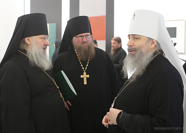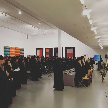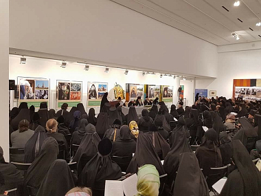 С кратким приветствием к монашествующим обратилась О.В. Нестерцева, заместитель директора Мультимедиа Арт музея на Остоженке, гостеприимно принявшего в своих стенах насельников монастырей. Ольга Валериановна пригласила гостей Арт музея посетить выставку, посвященную жертвам политических репрессий, обратив внимание на тот факт, что один из разделов выставки – это рассказ о Бутовском полигоне. В Бутове погребено около 1000 человек, пострадавших за православную веру. Более 300 из расстрелянных на полигоне священнослужителей причислено к лику святых.