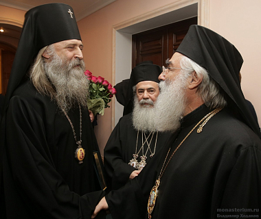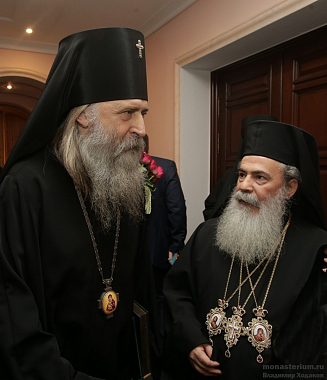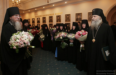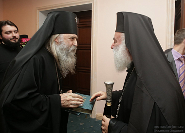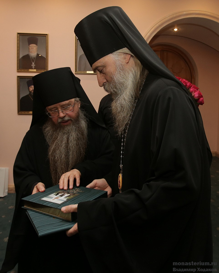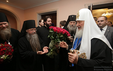 По окончании праздничного богослужения архиепископ Феогност поздравил Святейшего Патриарха Кирилла от лица монашествующих Русской Православной Церкви с 70-летним юбилеем и преподнес в дар Его Святейшеству памятный фотоальбом «Радость приближения к Богу. 70 лет в Церкви» (подготовлен редакторами издательства Данилова ставропигиального мужского монастыря, отпечатан в типографии Патриаршего издательско-полиграфического центра г. Сергиева Посада), посвященный визитам Предстоятеля Русской Православной Церкви в ставропигиальные монастыри.