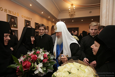 С благодарностью и любовью от всей души желаем Вам новых долгих и плодотворных лет Патриаршего служения во благо Русской Церкви, неиссякаемой бодрости и энергии, радости о Христе, мира душевного, крепкого здравия, всесильной помощи Божией и благодатного укрепления в Ваших первосвятительских трудах!