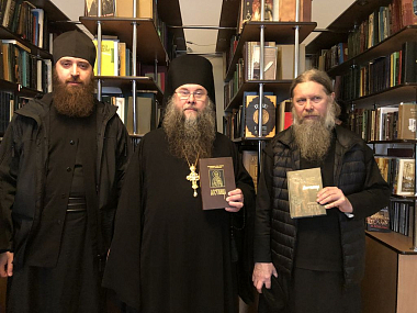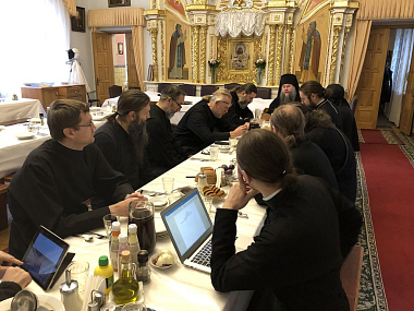 На базовой учебной площадке в Свято-Успенском Псково-Печерском мужском монастыре состоялась встреча комиссии и руководителя курсов протоиерея Романа Ледина с игуменом монастыря, управляющим Псковской епархией митрополитом Псковским и Порховским Тихоном.