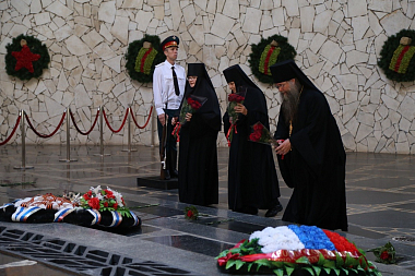 Во время визита в Волгоградскую митрополию гости осмотрели новый Александро-Невский кафедральный собор, который вскоре будет освящён. Посетили первую царицынскую церковь святого Иоанна Предтечи. Особо значимым было посещение Мамаева Кургана. Члены комиссии познакомились с подробностями Сталинградской битвы, историей создания мемориального памятника на Мамаевом Кургане, возложили цветы в пантеоне Славы. Председатель комиссии, архимандрит Феофилакт (Безукладников) совершил заупокойную литию о убиенных воинах в храме Всех Святых на Мамаевом Кургане.
