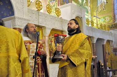 После окончания богослужения архимандрит Мелхиседек произнес проповедь и поздравил всех с праздником.