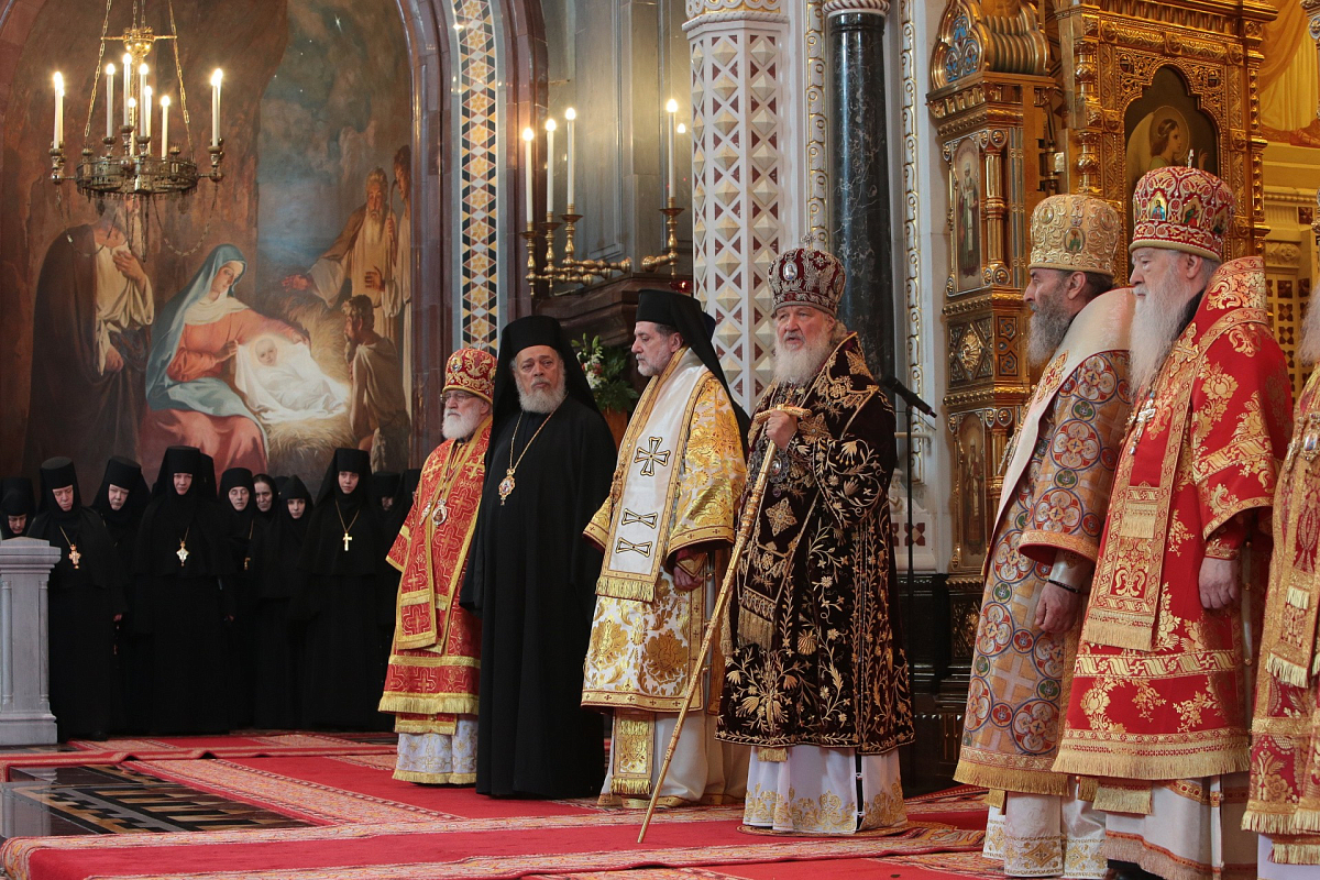В этот день Предстоятель Русской Православной Церкви возглавил Божественную литургию в кафедральном соборном Храме Христа Спасителя в Москве.