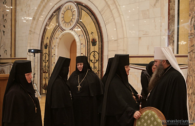 Вечером этого дня, в канун празднования дня памяти преподобного Силуана Афонского, игумены и игумении Русской Православной Церкви молились на праздничном всенощном бдении в Троицком соборе Данилова ставропигиального монастыря.