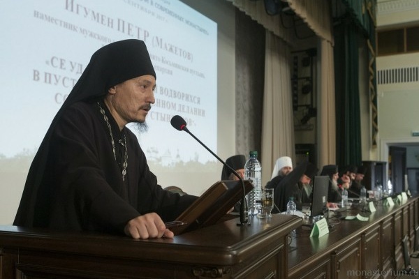 Наместник мужского монастыря Свято-Косьминская пустынь Екатеринбургской епархии игумен Петр (Мажетов) в докладе «Се, удалихся бегая и водворихся в пустыни: о молитвенном делании современных “пустынников”» раскрыл особенности внутренней брани, «двойного мученичества» в подвиге внутренней молитвы и отсечения своей воли. «Пустыня начинается с внимательной молитвы», – отметил отец Петр.