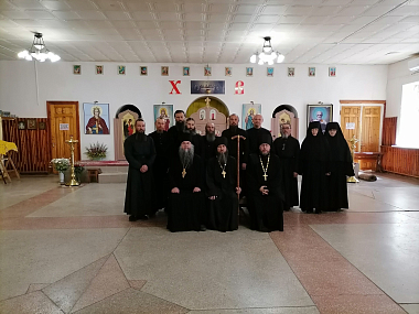 Затем члены комиссии посетили основную базовую учебную площадку – Екатеринодарскую духовную семинарию. Здесь прошла беседа с руководством и преподавателями, игуменами и игумениями монастырей. Архимандрит Феофилакт сообщил о целях и задачах обучения монашествующих, подробно рассказал о программе обучения и ответил на вопросы. На встрече присутствовали: ректор Екатеринодарской духовной семинарии протоиерей Михаил Литвинко, руководитель курсов иеромонах Корнилий (Иванов), заведующий учебно-методическим отделом иерей Александр Ливенский, методист курсов Т.С. Ашурко, игумения Тавифа (Зоро), настоятельница Марие-Магдалинского женского монастыря станицы Роговской (Ейская епархия), игумения Неонилла (Кузьмина), настоятельница Краснодарского монастыря в честь иконы Божией Матери «Всецарица», а также преподаватели: прот. Кирилл Коршунов, прот. Александр Бордунов, иерей Максим Ханов, иерей Максим Топоров, иерей Владимир Бондаренко, иерей Михаил Еремин, и.о. зав. кафедры церковно-практических дисциплин иерей Андрей Кретов, и.о. зав. кафедры богословия иерей Евгений Мельников. Дистанционно принимала участие во встрече игумения Зосима (Быстрова), настоятельница монастыря в честь иконы Божией Матери «Нерушимая стена» г. Апшеронска.