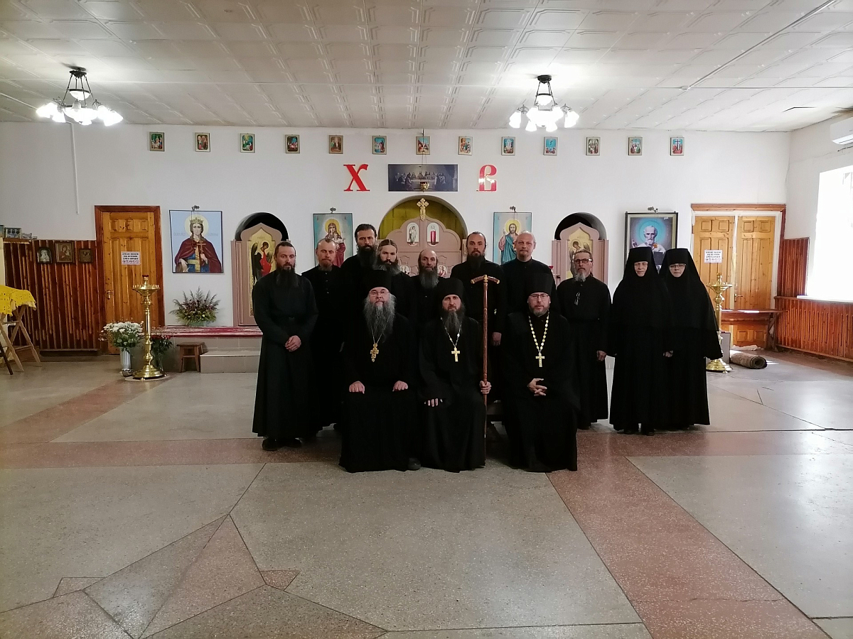 7 сентября члены выездной комиссии побывали в Ейской епархии. В Марие-Магдалинском женском монастыре станицы Роговской состоялась встреча с правящим архиереем – епископом Ейским и Тимашевским Павлом (Григорьевым). В беседе владыка Павел подчеркнул важность образования в монастырях и особую значимость монашества для Церкви. Епископ Павел обозначил те негативные явления, которые появляются в монастырской среде при отсутствии духовного просвещения и базового богословского образования у насельников обителей. Во встрече приняли участие: игумения Тавифа (Зоро), настоятельница Марие–Магдалинского женского монастыря станицы Роговской и все сестры обители, настоятель Свято-Духова мужского монастыря г. Тимашевска архимандрит Иоанн (Коновалов) и наместник Екатерино-Лебяжской Николаевской пустыни станицы Брюховецкой игумен Никон (Примаков).В завершении визита комиссия посетила Екатерино-Лебяжскую Николаевскую пустынь в пос. Лебяжий остров близ станицы Брюховецкой, где также была проведена беседа о курсах с игуменом Никоном и братией обители, которые не имеют богословского образования и не учатся в семинарии.
