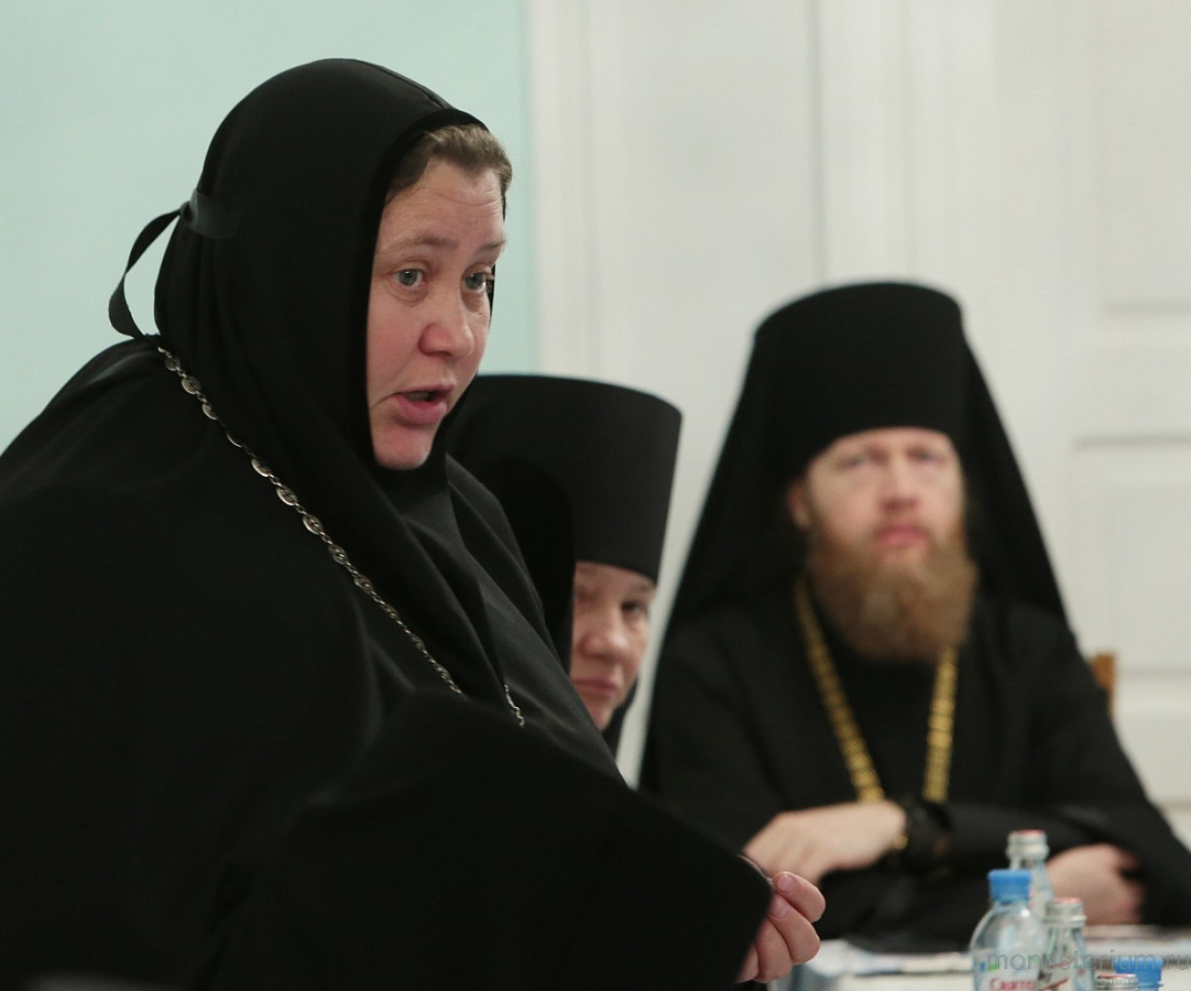 Игумения Ксения (Чернега), руководитель Юридической службы Московской Патриархии, настоятельница Алексеевского ставропигиального женского монастыря, познакомила наместников и игумений с важными изменениями в законодательстве Российской Федерации, касающимися жизнедеятельности монастырей, а также сообщила о законодательных инициативах, которые посвящены контролю за положением религиозных организаций и находятся сейчас на рассмотрении в Государственной Думе РФ.