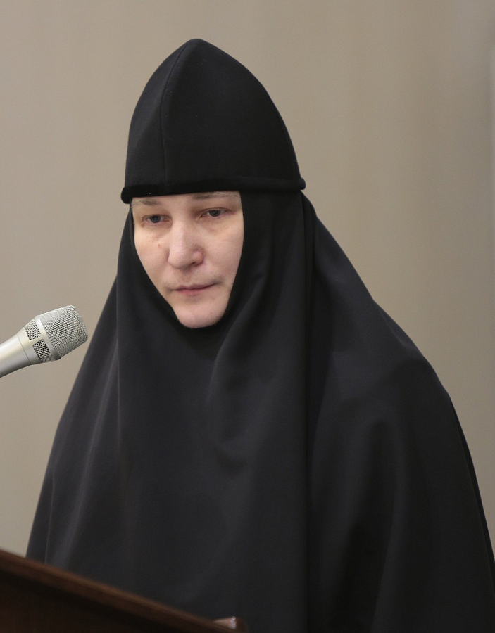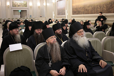 В президиуме присутствовали: епископ Дмитровский Феофилакт, наместник Андреевского ставропигиального мужского монастыря; епископ Егорьевский Тихон, наместник Сретенского ставропигиального мужского монастыря; игумения Иулиания (Каледа), Заместитель Председателя Отдела, настоятельница Зачатьевского ставропигиального женского монастыря.