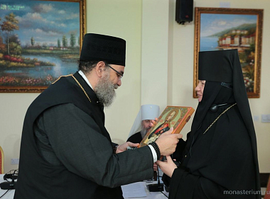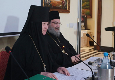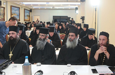 Доклад представителя Кипрской Православной Церкви архимандрита Дионисия (Коптидиса) носил название «Настоятельница священной обители священномученика Ираклидия игумения Харифея как пример современной духовной жизни среди женского монашества на Кипре». Отец Дионисий подробно познакомил аудиторию с житием выдающейся подвижницы, приснопамятной старицы Харифеи, практически нашей современницы, которая в течение тридцати четырех лет несла нелегкий крест игуменства в обители, восстановленной ею из руин. Матушка настоятельница молитвой, собственными трудами и мудрым руководством не просто отстроила и благоукрасила монастырь святого Ираклидия, главное – она создала обитель как духовный организм. По словам архимандрита Дионисия, она «в самом начале своего монашеского пути осознавала ответственность за сохранение монашеских традиций и за духовное окормление сестер». Сохранились и изданы дневниковые записи, письма старицы и ее духовные литературные труды, которые раскрывают этапы ее личностного становления и познания сути монашеской жизни. Она часто говорила, что монашеское жительство есть дар, данный Самим Богом, а не дело человеков. «Чтобы сложился и начал развиваться духовный организм, наставник должен плакать вместе с плачущими и радоваться с радующимися. Он должен снисходить на уровень любого из братии и иметь силу удержать его от падения и возвратить его к своей цели и обетам, данным перед Распятым Иисусом. Для этого требуется вместить в себя огромную любовь, большое терпение и мастерство...» – писала матушка Харифея. Безграничное самопожертвование ради ближнего, истинная любовь и неколебимая вера в Творца не оставляли ее до последнего вздоха. «Ее молитвы да помогут и нам сподобиться Божией милости», – заключил свое выступление отец Дионисий.