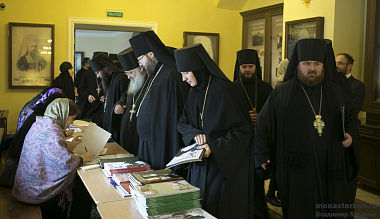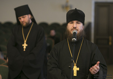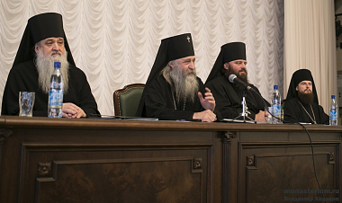 Открывая собрание, архиепископ Феогност передал участникам благословение Святейшего Патриарха Московского и всея Руси Кирилла, ознакомил собравшихся с повесткой дня, а также предложил задавать вопросы выступающим, делиться друг с другом собственным положительным опытом в решении актуальных задач монастырской жизни.