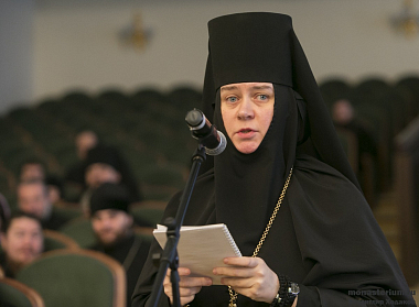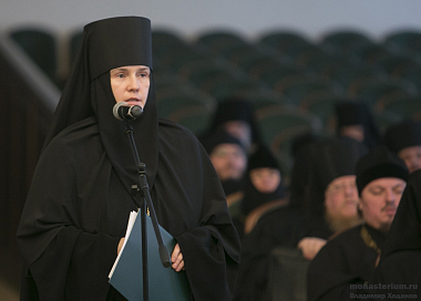 В первой части собрания докладчики сообщили о том, как в епархиях проходил региональный этап XXV Международных Рождественских образовательных чтений по направлению «Древние монашеские традиции в условиях современности». Тема Чтений «1917–2017: уроки столетия» нашла отражение в докладах, посвященных подвигу монашества в XX и XXI веках. Представители епархий рассказали о том, что на мероприятия профильного направления приезжают игумены и игумении всех монастырей епархии, а монашеские встречи стали поводом для обсуждения актуальных вопросов монастырской жизни в разных форматах. Докладчики особо отметили положительный опыт Синодального отдела по монастырям и монашеству в организации подобных мероприятий, который сегодня охотно перенимают в епархиях.