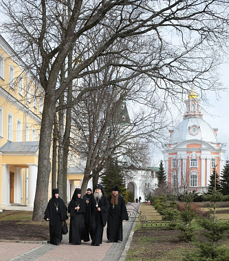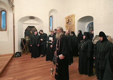 Перед началом совещания председатель Синодального отдела по монастырям и монашеству, наместник Свято-Троицкой Сергиевой лавры архиепископ Сергиево-Посадский Феогност отслужил молебен в Троицком соборе Лавры перед мощами преподобного Сергия Радонежского.
