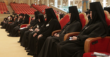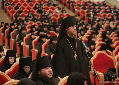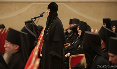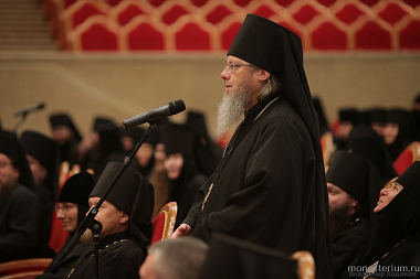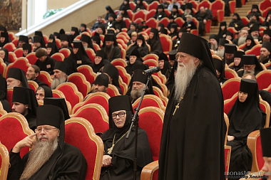 Открывая собрание, архиепископ Сергиево-Посадский Феогност приветствовал Святейшего Патриарха Кирилла от лица собравшихся и поблагодарил Предстоятеля Русской Православной Церкви за возможность соборно обсуждать актуальные вопросы современного монашества.