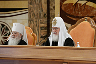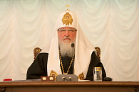 Святейший Патриарх Кирилл выступил перед участниками собрания с докладом.