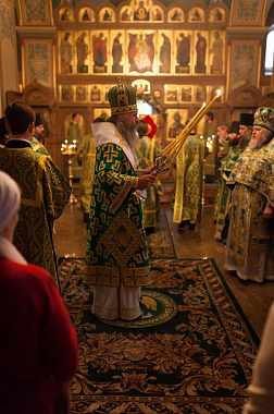По окончании богослужения был совершен праздничный крестный ход и возглашено многолетие священноигумену Спасо-Преображенского Валаамского ставропигиального мужского монастыря Святейшему Патриарху Кириллу, архиепископу Сергиево-Посадскому Феогносту и игумену Валаамской обители епископу Троицкому Панкратию.