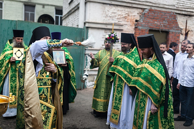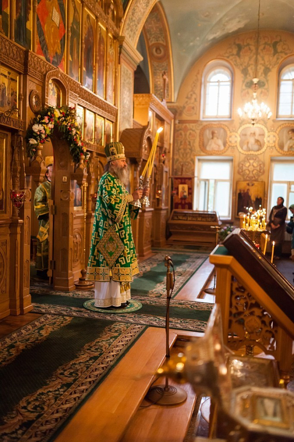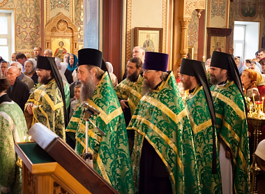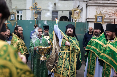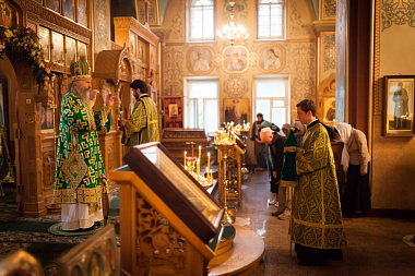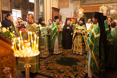 10 июля, в день памяти святых основателей Спасо-Преображенского Валаамского ставропигиального мужского монастыря преподобных Сергия и Германа, Валаамских чудотворцев, в честь которых освящен главный храм Московского подворья Валаамской обители, по благословению Святейшего Патриарха Московского и всея Руси Кирилла Божественную литургию на подворье возглавил Председатель Синодального отдела по монастырям и монашеству архиепископ Сергиево-Посадский Феогност.