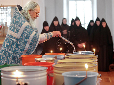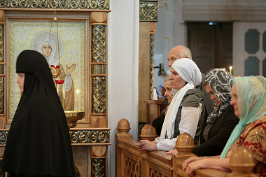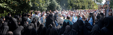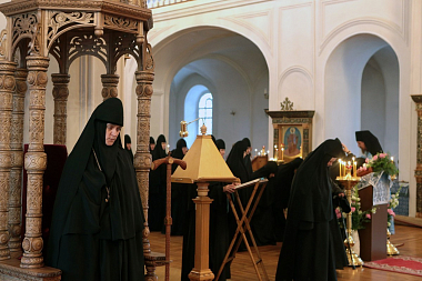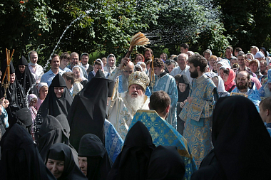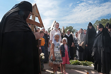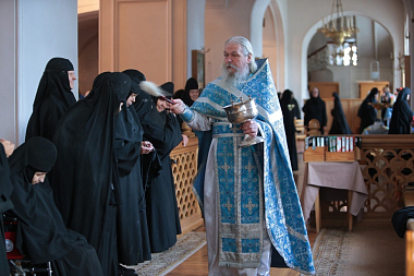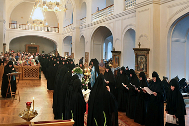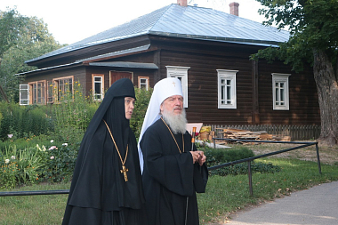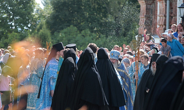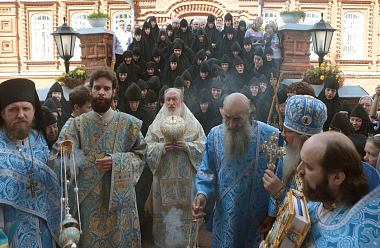 Сердечно всех вас поздравляю с праздником! Особенно хотел бы поздравить игумению Сергию и сестер этой обители, которые не устрашаются того разорения, в котором была эта обитель, трудятся и своей молитвой содействуют воссозданию этой святой обители. Благодатная милость Божия, предстательство Божией Матери, пребывающее в этой обители, укрепит наши силы и всех, кто сюда с верой притекает, укрепляется в надежде и утверждается в любви к Богу. Всех вас с праздником!»