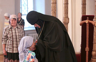 «Всечестную игумению Сергию, сестер святыя обители сея, всех вас, отцы, братья и сестры, сердечно поздравляю с престольным праздником этой святой обители – празднованием Казанской иконы Божией Матери.