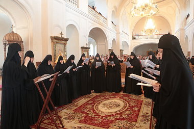 Отрадно входить в обители, где молитвенное настроение ежедневно, ежечасно присутствует. Этот год для нашей Церкви ознаменован празднествами 700-летия рождения преподобного Сергия Радонежского, и буквально на днях были торжества в Троице-Сергиевой лавре. И обращаясь ко всем нам, Святейший Патриарх Кирилл сказал: «Мы должны всегда держать перед глазами образ Святой Руси. Это то, к чему мы должны стремиться, и многие подвижники, которых прославила Церковь, ориентируясь на этот образ святости, достигли в этой жизни за свою добродетельность святости и избрания от Бога».