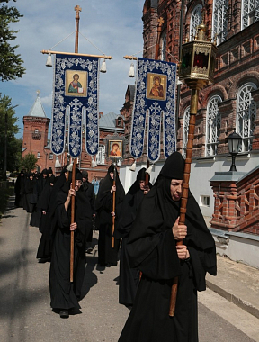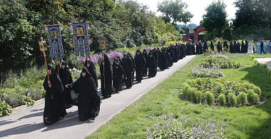 По окончании Литургии был совершен торжественный крестный ход вокруг Казанского собора обители, во время которого владыка Димитрий отслужил литию на могиле игумении Никоны (Перетягиной), бывшей настоятельницей Шамординской обители в 1990–2012 годах.