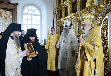 Затем Предстоятель Русской Церкви посетил Троицкий скит на острове Анзер и Сергиевский скит на острове Большая Муксалма.