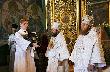 Прежде всего хотел бы передать всем вам благословение Святейшего Патриарха Московского и всея Руси Кирилла, который в этот день находится в Соловецком Преображенском монастыре,совершаяБожественную литургию в честь этого великого праздника.