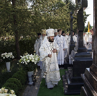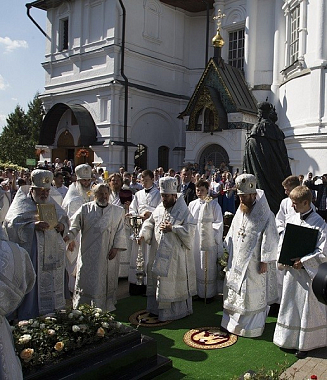 По завершении богослужения во время крестного хода было совершено освящение надгробного креста на могилеархиепископа Костромского и Галичского Алексия (Фролова), который в 1991–2011 годах был наместником Новоспасского ставропигиального монастыря.