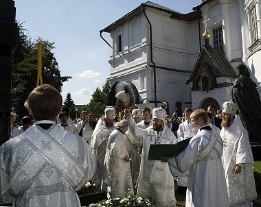 19 августа, в праздник Преображения Господа Бога и Спаса нашего Иисуса Христа и престольный праздник Новоспасской обители, Председатель Отдела внешних церковных связей Московского Патриархата митрополит Волоколамский Иларион возглавил Божественную литургию в Спасо-Преображенском соборе Новоспасского ставропигиального мужского монастыря Москвы.