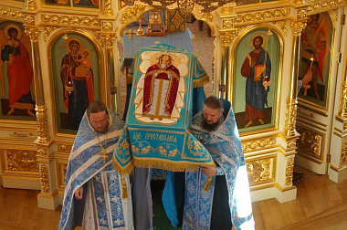 В сам праздник были совершены молебен с водосвятием и две Божественные литургии в Успенском приделе и главном алтаре Троицкого собора.