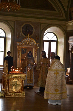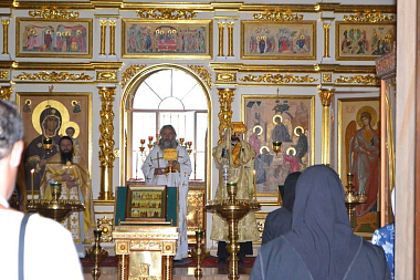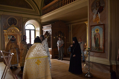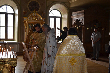 Владыка Феогност совершил Божественную литургию. Архиепископу Феогносту сослужил священник Зосимовой пустыни иерей Владимир Миронов.