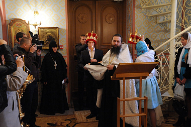 Венчал Дарью и Николая протоиерей Илия. Поздравив молодоженов со вступлением на стезю супружеской жизни, о. Илия отметил, что Дарья и Николай являются второй благочестивой семьей, вышедшей из стен приюта для девочек Покровского женского монастыря, которая должна быть образцом для всех. Таким образом, монастырь продолжает заботиться о воспитанницах приюта для девочек и после их выпуска из стен обители.