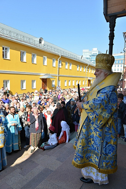 В день праздника Высокопреосвященнейший владыка Арсений совершил Литургию и крестный ход, по окончании которого передал всем поздравление и благословение Святейшего Патриарха Московского и всея Руси Кирилла и обратился к молящимся с архипастырским словом: