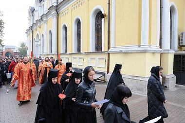 26 сентября, в день памяти Обновления храма Воскресения Христова в Иерусалиме, состоялся престольный праздник храма Воскресения Словущего в Покровском ставропигиальном женском монастыре Москвы.