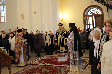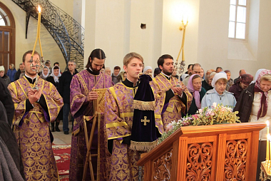 В этот день Высокопреосвященнейший владыка Феогност совершил Божественную литургию в Вознесенском соборе Крестовоздвиженской обители в сослужении духовенства Троице-Сергиевой лавры. За Литургией молились настоятельница Крестовоздвиженского монастыря игумения Екатерина (Чайникова), сестры и прихожане обители.