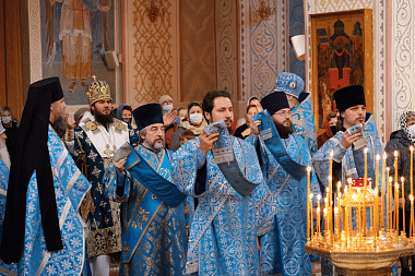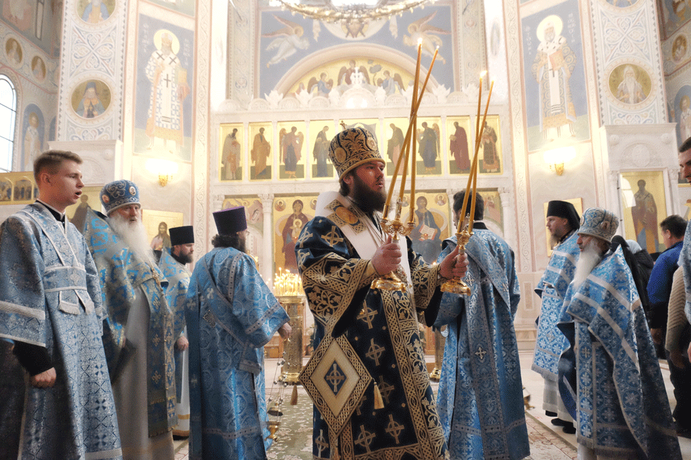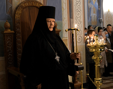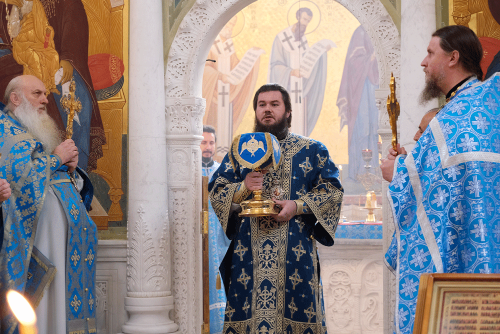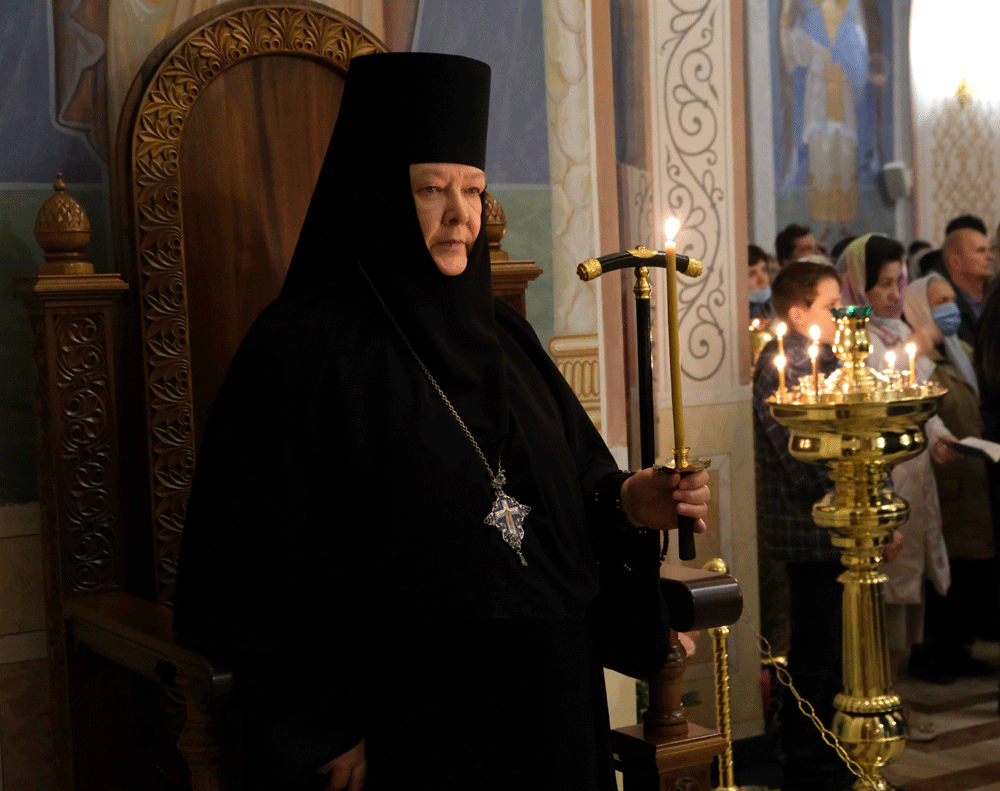 После славления праздника Преосвященнейший владыка поздравил игумению Олимпиаду и всех молящихся с престольным праздником обители и обратился к собравшимся с архипастырским словом.