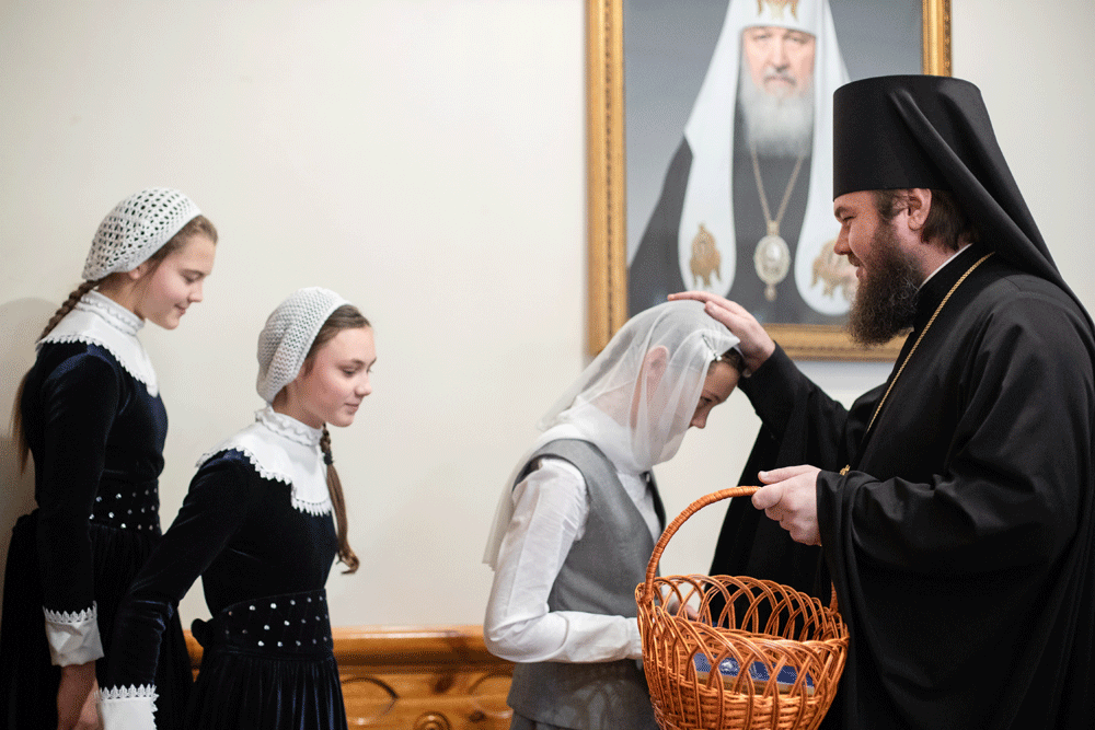 Ранняя Литургия была совершена в Покровском соборе. Во время богослужения пел хор воспитанниц пансиона.