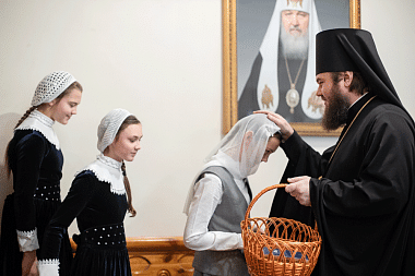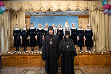 По окончании праздничной трапезы гости обители были приглашены на концерт в детский пансион, который приготовили воспитанницы. После выступления присутствующим был показан слайд-фильм о пансионе.