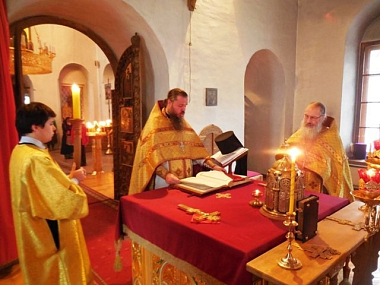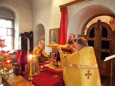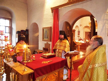 Игумену Дамиану сослужили духовник обители иеромонах Георгий (Мысовский) и клирик обители протоиерей Александр Троицкий.