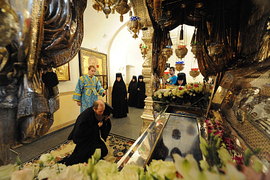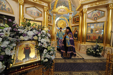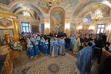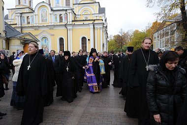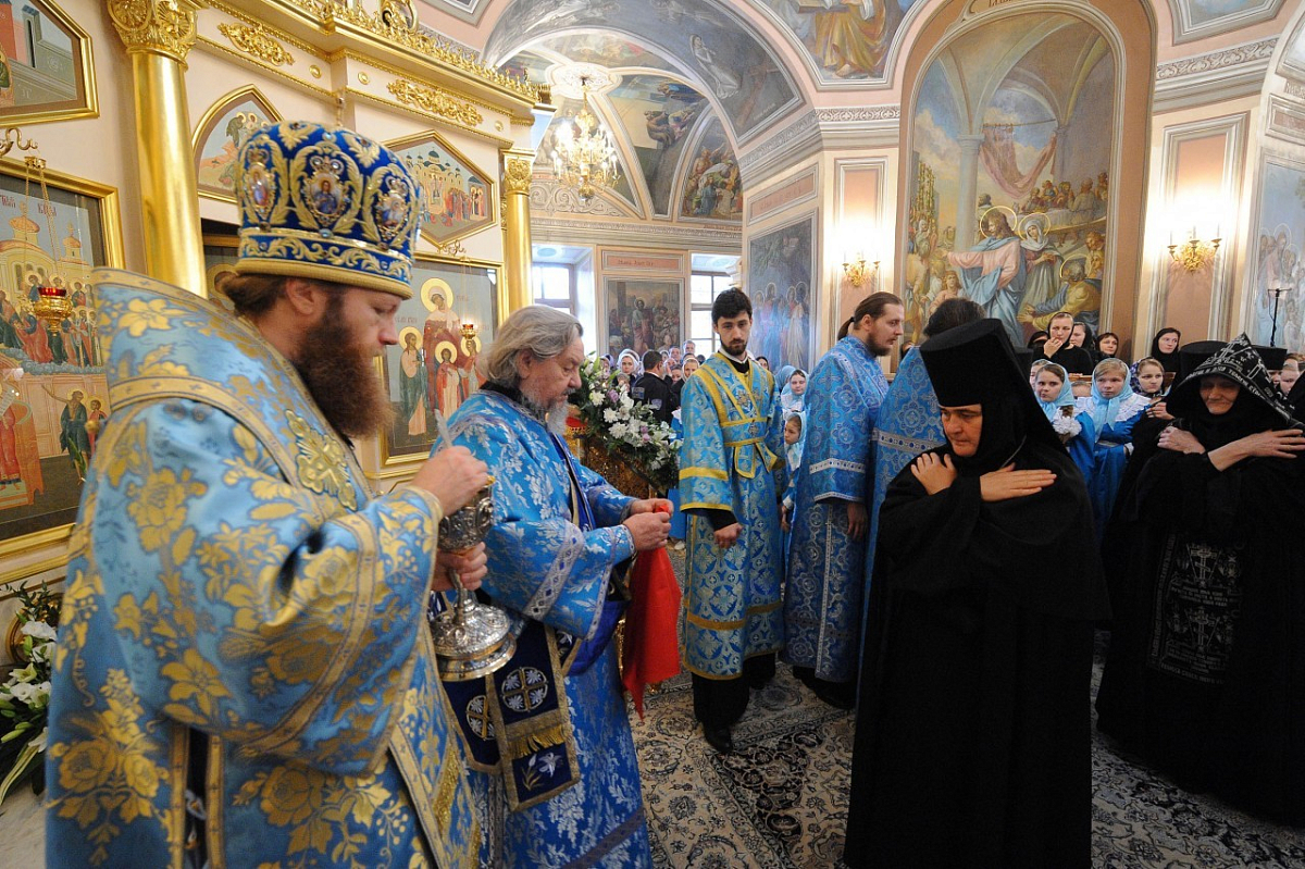 По окончании Литургии владыка Савва возглавил праздничный крестный ход вокруг Покровского храма обители, после чего окропил храм и всех молящихся святой водой, а затем все пришедшие на торжество соборно пропели молитву «Царице моя Преблагая».