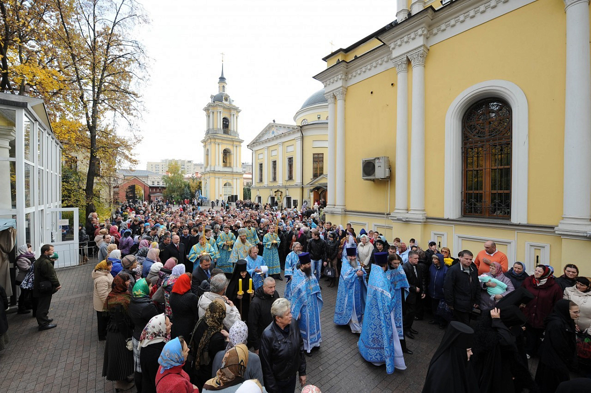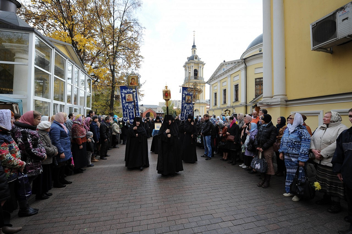 14 октября, в праздник Покрова Пресвятой Владычицы нашей Богородицы и Приснодевы Марии, по благословению Святейшего Патриарха Московского и всея Руси Кирилла наместник Новоспасского ставропигиального мужского монастыря епископ Воскресенский Савва совершил Божественную литургию в Покровском ставропигиальном женском монастыре Москвы.