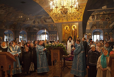 В Новоспасском монастыре два храма, в которых 14 октября совершаются престольные праздники: храм Преподобного Романа Сладкопевца и Покрова Божией Матери. По существующей традиции к Покрову был осуществлен переезд из летнего храма Преображения Господня в зимний Покровский.
