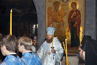 13 октября, накануне празднования Покрова Пресвятой Владычицы нашей Богородицы и Приснодевы Марии, наместник Новоспасского ставропигиального мужского монастыря, викарий Святейшего Патриарха Московского и всея Руси епископ Воскресенский Савва совершил Всенощное бдение в храме Покрова Божией Матери Новоспасской обители.