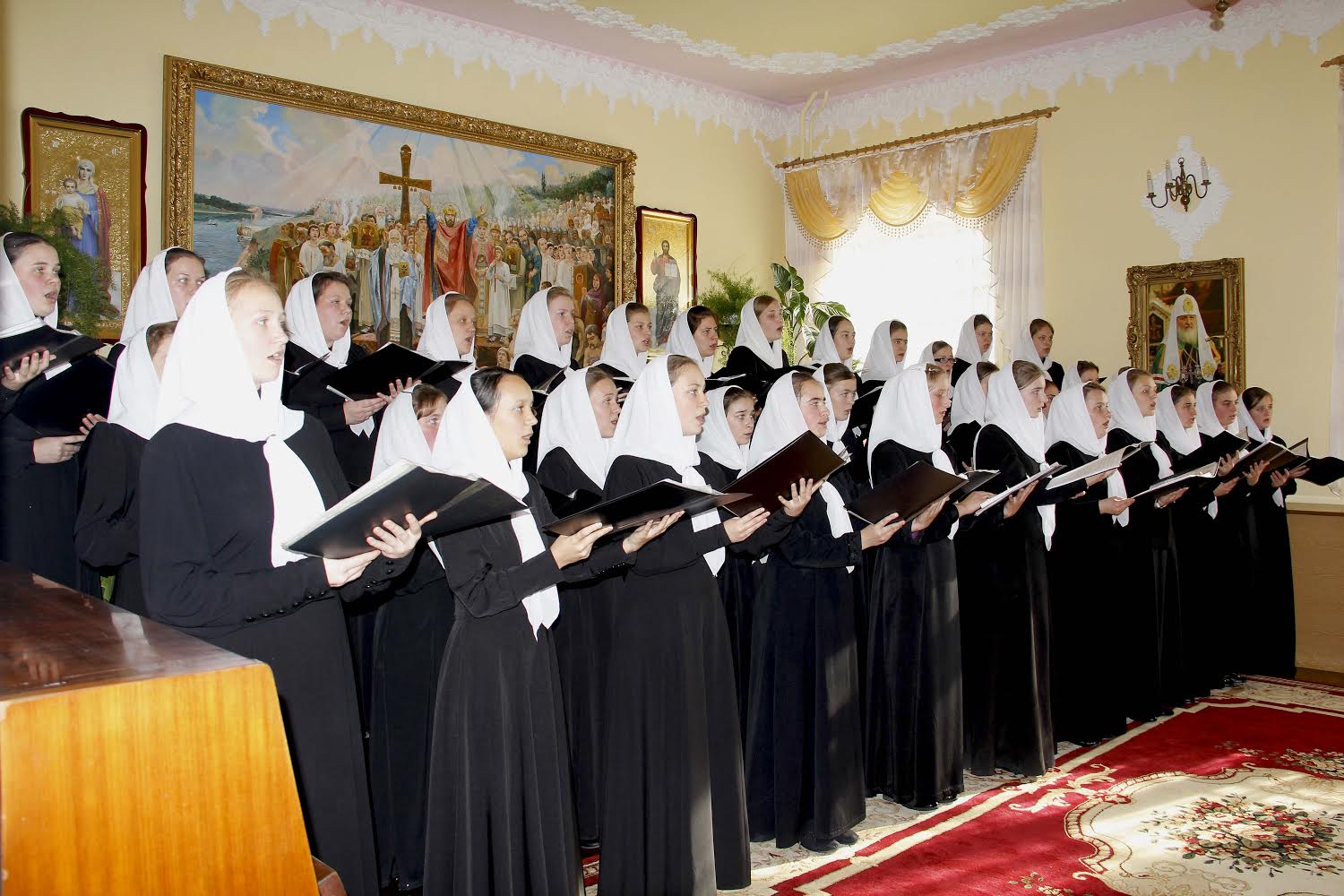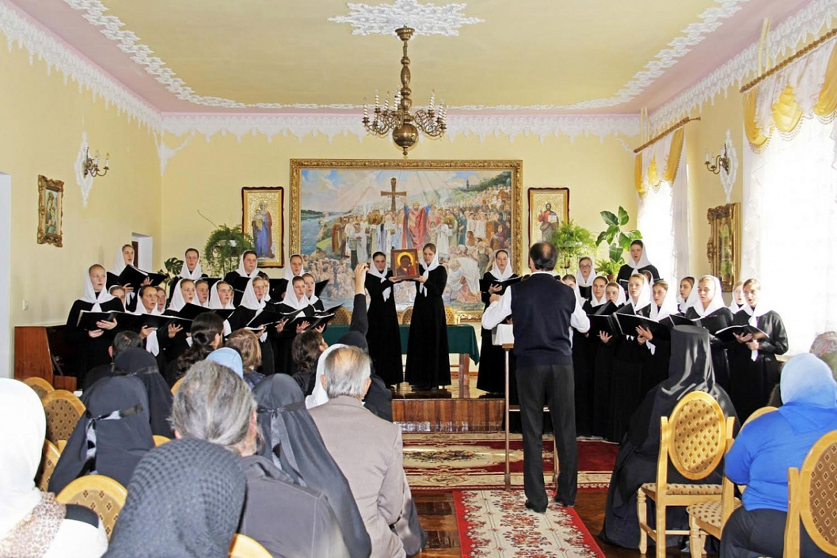 В завершение для гостей прозвучал праздничный концерт духовной музыки в исполнении воспитанниц Духовной школы под управлением заведующего учебной частью по музыкальным дисциплинам А.А. Одинца.