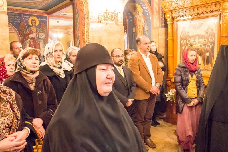 А Вам, дорогая матушка игумения, мы желаем сил, потому что Ваша задача, Ваша работа в монастыре − это самое важное. Сестрам я хотел бы пожелать, чтобы Господь давал им силы неустанно молиться. Потому что только благодаря монашеской молитве держится современный мир. И эта неустанная молитва должна продолжаться не только в храме на общем служении, но также и в кельях, кельях монахинь. Мы вас особенно благодарим за то, что вы нам спели сегодня и по-гречески. С большой радостью примем вас в Греции.