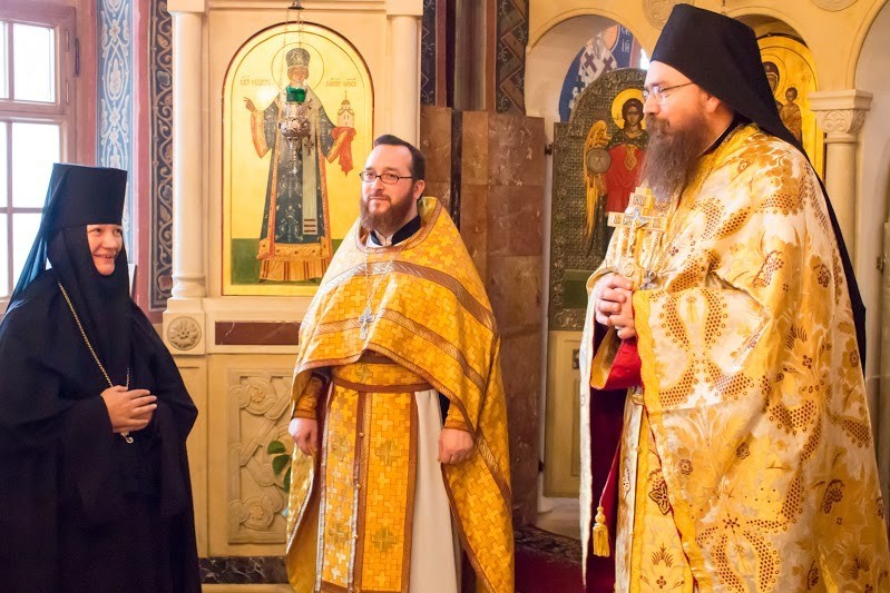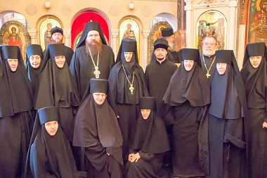Мы очень рады, что в последнее время в России произошли такие невероятные изменения: русский народ сейчас имеет возможность служить верой и правдой Господу Богу нашему. И я хочу поблагодарить Господа за то, что Он даровал нам такую милость − служить Литургию в вашем замечательном монастыре. И также отдельно поблагодарить Святейшего Патриарха Московского и всея Руси Кирилла, который пригласил нас в эту поездку и предоставил нам возможность почти каждый день совершать Божественную литургию в разных храмах Москвы. Мы 4 ноября сослужили Святейшему Патриарху в Успенском соборе Кремля, служили также в мужских монастырях и вот сегодня − в женском. Нас очень порадовало то, что мы увидели в вашей обители. Это порядок, это чистота, это византийского стиля росписи в храме. И сегодняшняя Литургия доставила нам особенную радость, потому что сестры пели как ангелы.
