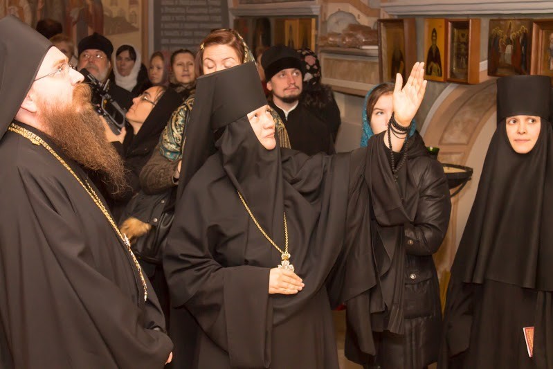 По окончании Божественной литургии архимандрит Никанор обратился со словами благодарности к настоятельнице Зачатьевского монастыря игумении Иулиании, священству и сестрам обители: