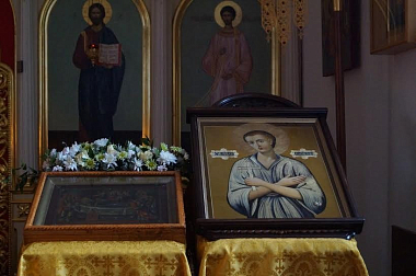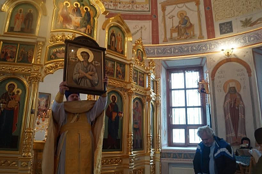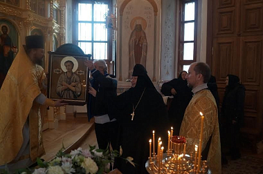 Приняв икону из рук игумении Марии, священник монастыря протоиерей Владислав под пение тропаря и величание святому осенил ею предстоящих. После отпуста все прихожане имели возможность приложиться к переданной в дар обители иконе и получить на молитвенную память акафист и образок святого.