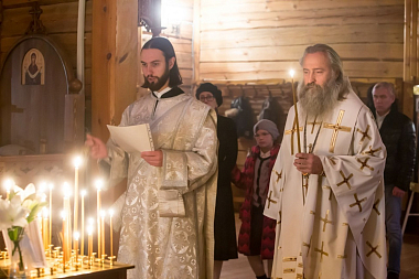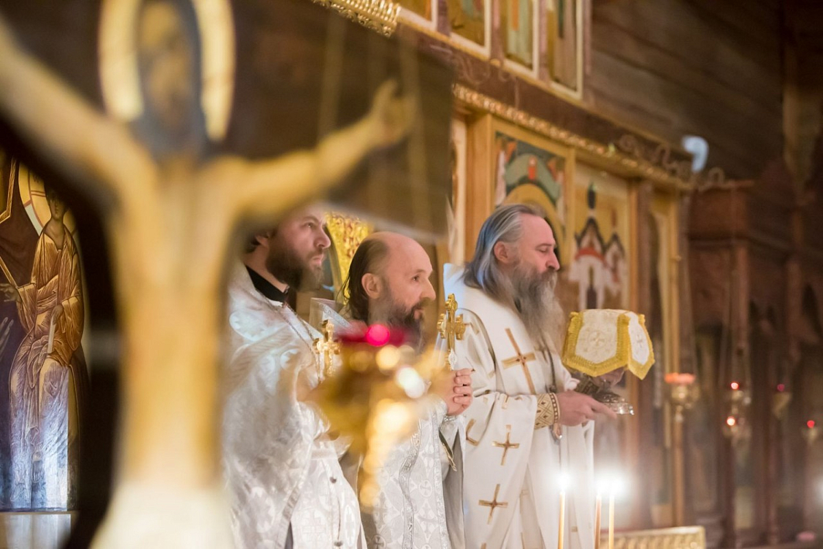 Богослужение возглавил Председатель Синодального отдела по монастырям и монашеству архиепископ Сергиво-Посадский Феогност.