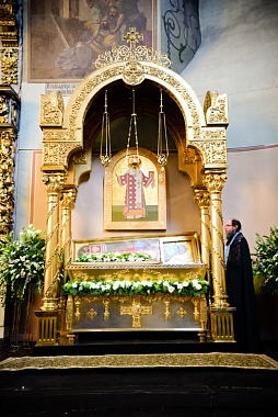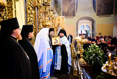 В дар Блаженнейшему Тихону от братии Донского монастыря была преподнесена икона Божией Матери «Донская».